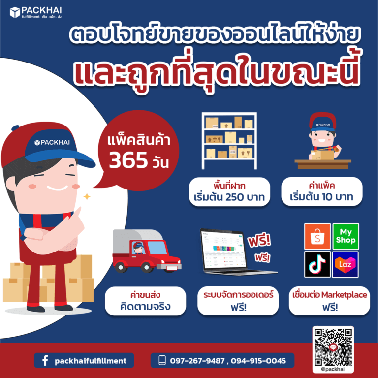 Fulfillment Packhai เราให้บริการคลังสินค้าออนไลน์ Fulfillment ครบวงจร บริการเก็บ-แพ็ค-ส่งไว้ในจุดเดียวกัน ตอบโจทย์ลูกค้าด้วยคลังสินค้าที่มีหลายสาขาทั่วประเทศ คลังสินค้าใกล้ฉัน ใกล้บ้านคุณ เรามีบริการเข้ารับสินค้ามาจัดเก็บในคลังฟรี ทั่วประเทศ มีพื้นที่ให้เช่าเก็บสินค้า มีคนช่วยแพ็คและส่งสินค้าให้ทันที หมดปัญหาจ่ายค่าจ้างพนักงาน ปัญหาจุกจิกเรื่องแรงงาน แพ็คของช้า แพ็คไม่ทัน ส่งของไม่ทัน ให้บริการระบบ fulfillment ฟรี นอกจากนั้นเรายังมีบริการเสริมแยกต่างหากบริการระบบ oms+wms ช่วยให้การขายสินค้าออนไลน์ มีประสิทธิภาพมากยิ่งขึ้นอีกด้วย