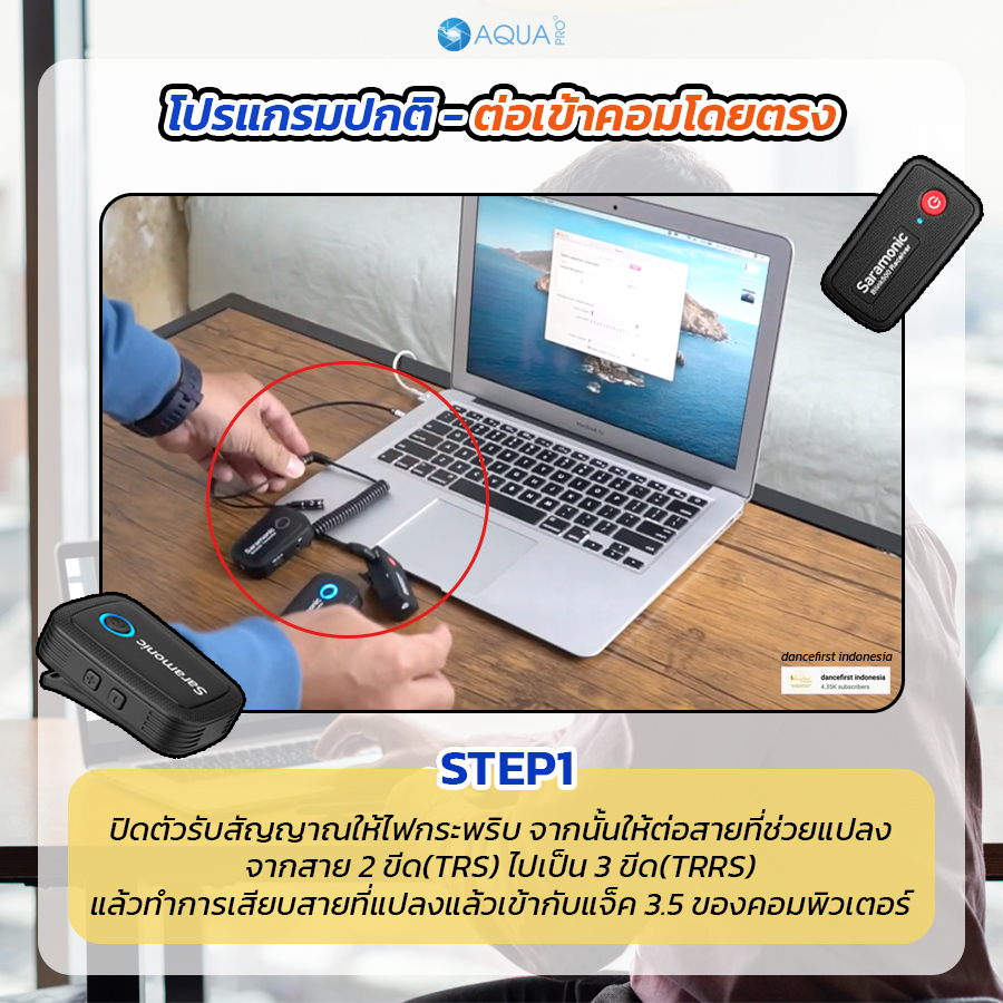 วิธีเชื่อมต่อ Saramonic Blink 500 ใช้กับคอม STEP BY STEP