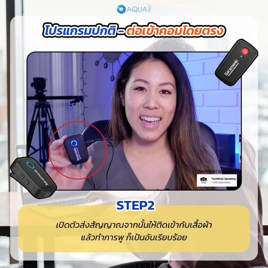 การประชุมออนไลน์ การนำเสนอออนไลน์ หรือ ทำคอนเทนต์ไลฟ์สด สตรีมมิ่ง เสียงเป็นสิ่งที่เราควรให้ความสำคัญ ยิ่งต้องทำงานแบบออนไลน์เสียงยิ่งต้องดี หรือ ถ้าคุณเป็นสายไลฟ์สด สตรีมมิ่งที่ต้องเชื่อมต่อกล้องเข้ากับคอมก็อาจจะต้องการเสียงที่ดี Aquaproอยากแนะนำไมค์ไร้สาย ที่เสียงดีแถมพกพาง่ายอย่าง