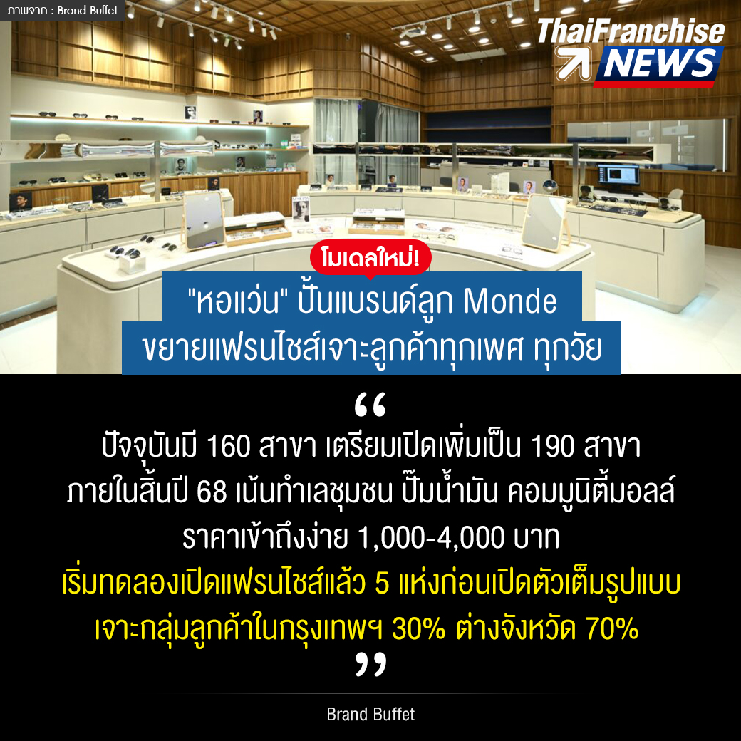 โมเดลใหม่! "หอแว่น" ปั้นแบรนด์ลูก Monde ขยายแฟรนไชส์เจาะลูกค้าทุกเพศ ทุกวัย