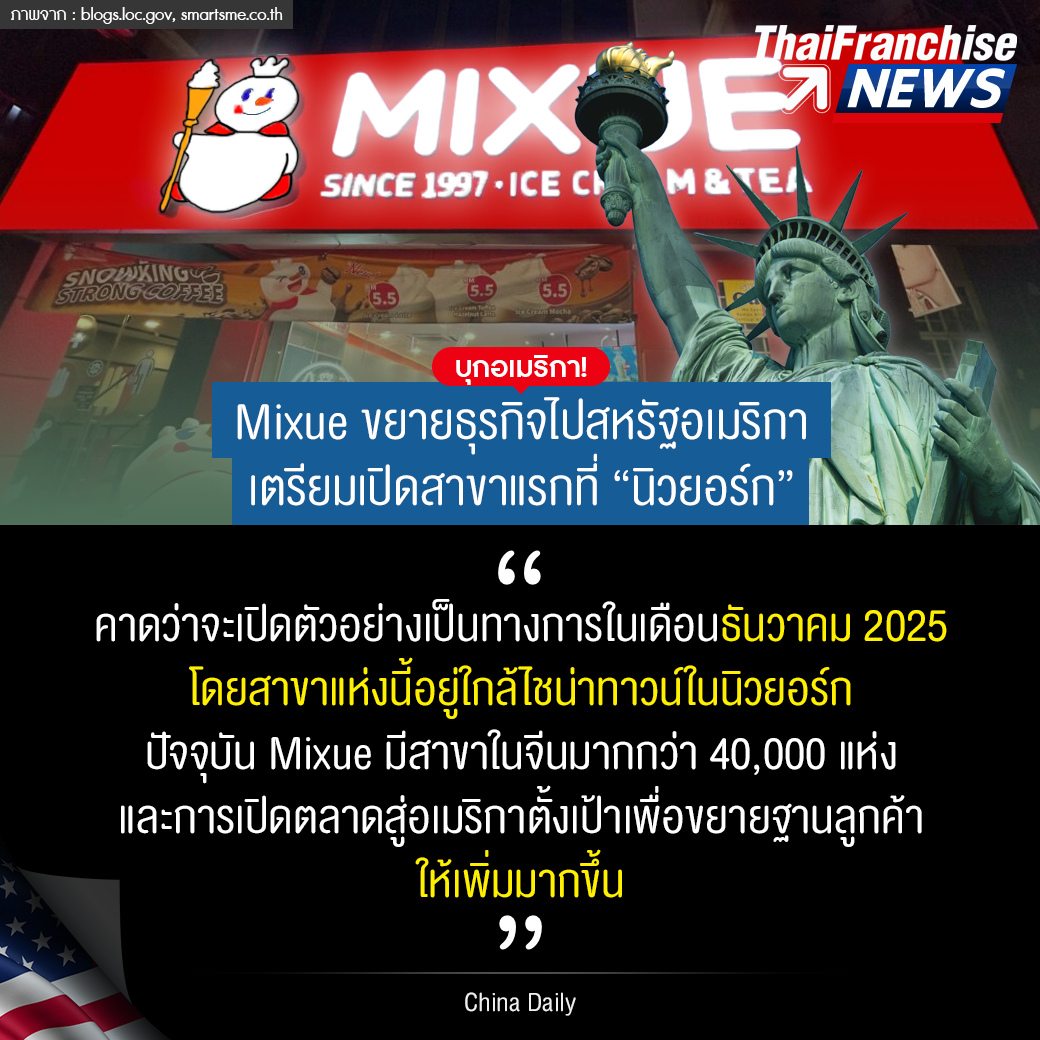 บุกอเมริกา! Mixue ขยายธุรกิจไปสหรัฐอเมริกา เตรียมเปิดสาขาแรกที่ "นิวยอร์ก"