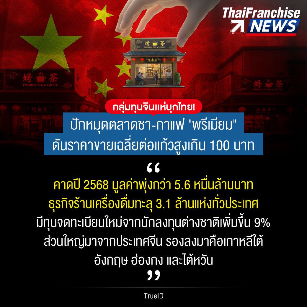 กลุ่มทุนจีนแห่บุกไทย! ปักหมุดตลาดชา-กาแฟ "พรีเมียม" ดันราคาขายเฉลี่ยต่อแก้วสูงเกิน 100 บาท