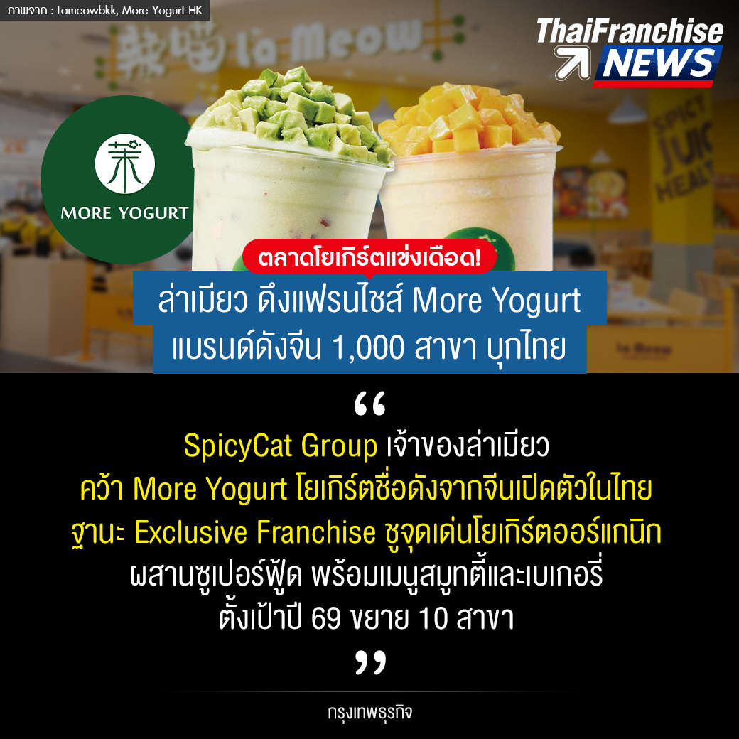 SpicyCat Group เจ้าของล่าเมียว คว้า More Yogurt โยเกิร์ตชื่อดังจากจีน เปิดตัวในไทยฐานะ Exclusive Franchise ชูจุดเด่นโยเกิร์ตออแกนิก ผสานซูเปอร์ฟู้ด พร้อมเมนูสมูทตี้และเบเกอรี่ ตั้งเป้าปี 69 ขยาย 10 สาขา