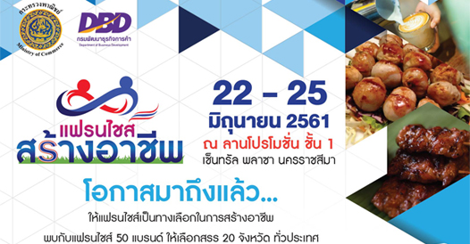 กรมพัฒนาธุรกิจการค้ากระทรวงพาณิชย์ ขอเชิญร่วมสร้างโอกาสทางธุรกิจ และเลือกลงทุนธุรกิจในระบบแฟรนไชส์ กว่า 40 แบรนด์ดัง ในพาวิเลี่ยนของกรมพัฒนา..