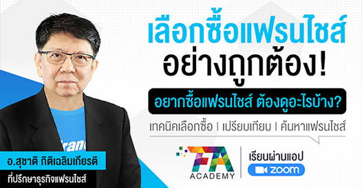 ไกค์วิธีเลือกซื้อแฟรนไชส์ให้ปัง! กับ หลักสูตรการเลือกซื้อธุรกิจแฟรนไชส์อย่างถูกต้อง! (Online)