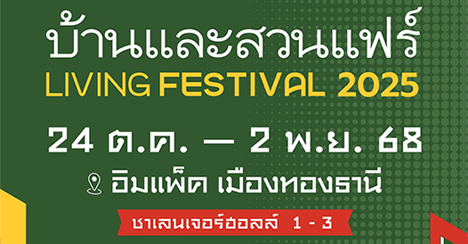 งานบ้านและสวนแฟร์ Living Festival 2025 วันที่ 24 ต.ค. - 2 พ.ย. 68 ชาเลนเจอร์ 1 - 3 อิมแพ็ค เมืองทองธ..
