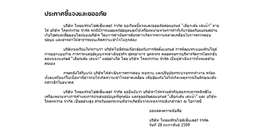 บริษัท ไทยแฟรนไชส์เซ็นเตอร์ จำกัด ขอเรียนชี้แจงและขออภัยต่อแบรนด์ “เลือกเส้น เล่นน้ำ” ภา..