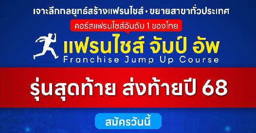 โค้งสุดท้าย! คอร์ส Franchise Jump Up เนื้อหาอัดแน่น ชัดเจน ตรงประเด็น เรียนวันที่ 19-20 ธค 68 นี้เท่านั้น!!!