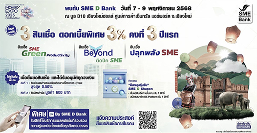 SME D Bank ยกขบวน ‘พัฒนาคู่เติมทุน’ ร่วมงาน ‘Money Expo เชียงใหม่ 2025’ มอบโปรโมชันดันเอสเอ็มอีคว้าโอกาสเติบโตจากนโยบาย Quick Big Win