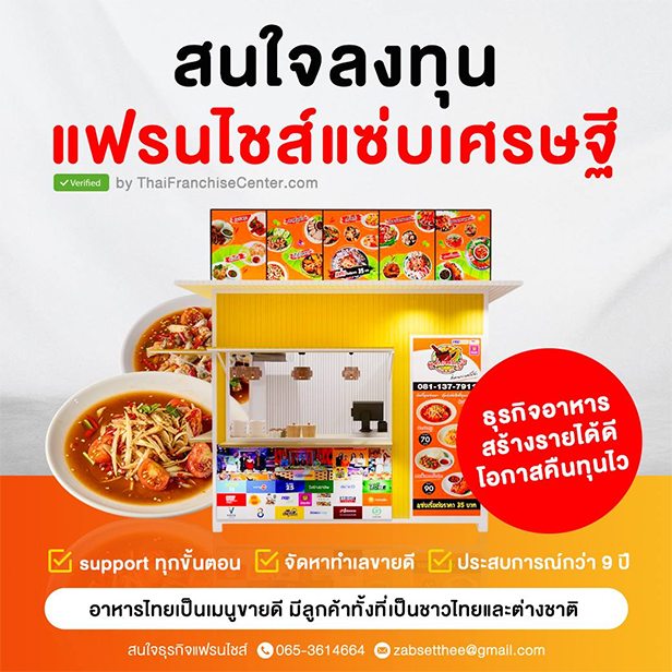 แซ่บเศรษฐี แฟรนไชส์ร้านส้มตำสุดแซ่บ ที่มาพร้อมไอเดียสุดเริ่ด จัดร้านแต่งร้านในบรรยากาศสุดชิลล์ พร้อมด้วยเมนูอาหารรสเลิศ ผู้ลงทุนไม่จำเป็นต้องมีประสบการณ์ มีทีมงานวิเคราะห์ทำเลให้ก่อนเปิดร้านพร้อมการฝึกอบรม + สอนสูตร ปัจจุบันถือเป็นแฟรนไชส์สร้างอาชีพที่ลงทุนคุ้มค่า โอกาสคืนทุนไว กำไรเร็ว