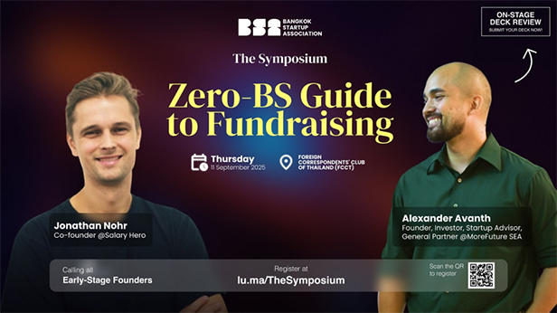 สมาคมผู้ประกอบการสตาร์ทอัพกรุงเทพฯ (Bangkok Startup Association – BSA) ขอเชิญผู้ก่อตั้งสตาร์ทอัพ ผู้ประกอบการหน้าใหม่ และนักลงทุน เข้าร่วมงานสัมมนา “Zero-BS Truths to Fundraising – Essential Insights for Early-Stage Startup Founders” ซึ่งเป็นเซสชันตรงไปตรงมา โดยมุ่งเน้นเปิดเผยความจริงเกี่ยวกับการระดมทุนและกลยุทธ์เชิงปฏิบัติสำหรับการสร้างสตาร์ทอัพที่น่าลงทุน งานจะจัดขึ้นในวันพฤหัสบดีที่ 11 กันยายน 2568 ณ Flamenco กรุงเทพฯ