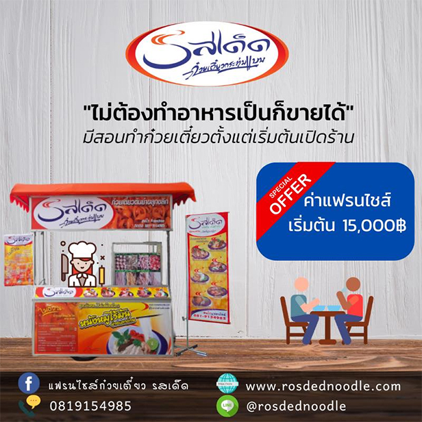 สนใจลงทุนแฟรนไชส์รสเด็ด ก๋วยเตี๋ยวกระทุ่มแบน โทร.081-915-4985