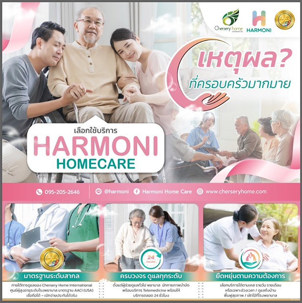 โดยเฉพาะบริการ Harmoni Home Care ที่ลูกค้ากว่า 500 ครอบครัวให้ความไว้วางใจ มีการดูแลผู้สูงวัยให้ถึงบ้าน เหมือนมีทีมแพทย์และพยาบาลคอยอยู่เคียงข้างทุกวันดูแลได้ทุกอาการ โดยบุคลากรที่มีคุณภาพ ตั้งแต่ผู้ช่วยดูแลทั่วไป พยาบาล นักกายภาพบำบัด