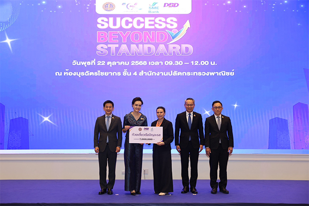 วันที่ 22 ตุลาคม 2568 กรมพัฒนาธุรกิจการค้า กระทรวงพาณิชย์ จัดงาน Success Beyond Standard มอบสินเชื่อให้แก่ธุรกิจแฟรนไชส์ที่ผ่านการคัดเลือก เพื่อให้ผู้สนใจแฟรนไชส์ที่มีศักยภาพสามารถเข้าถึงแหล่งทุนซึ่งได้รับการสนับสนุนสินเชื่อจาก ธนาคารพัฒนาวิสาหกิจขนาดกลางและขนาดย่อมแห่งประเทศไทย โดยได้รับเกียรติจากนางศุภจี สุธรรมพันธุ์ รัฐมนตรีว่าการกระทรวงพาณิชย์เป็นผู้มอบรางวัลอันทรงเกียรติในครั้งนี้