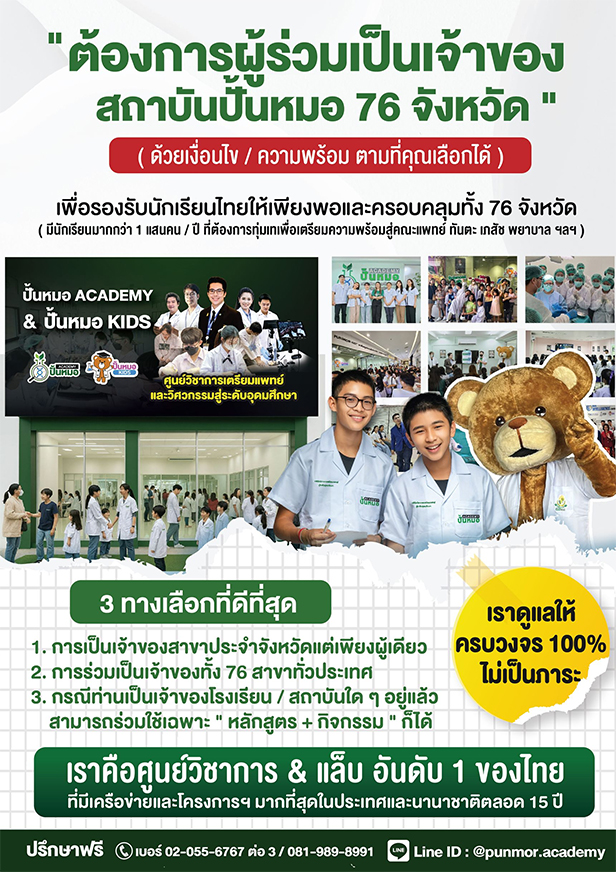 โอกาสสำคัญ! ปั้นหมอ Academy “ต้องการผู้ร่วมเป็นเจ้าของสถาบันปั้นหมอ 76 จังหวัด”