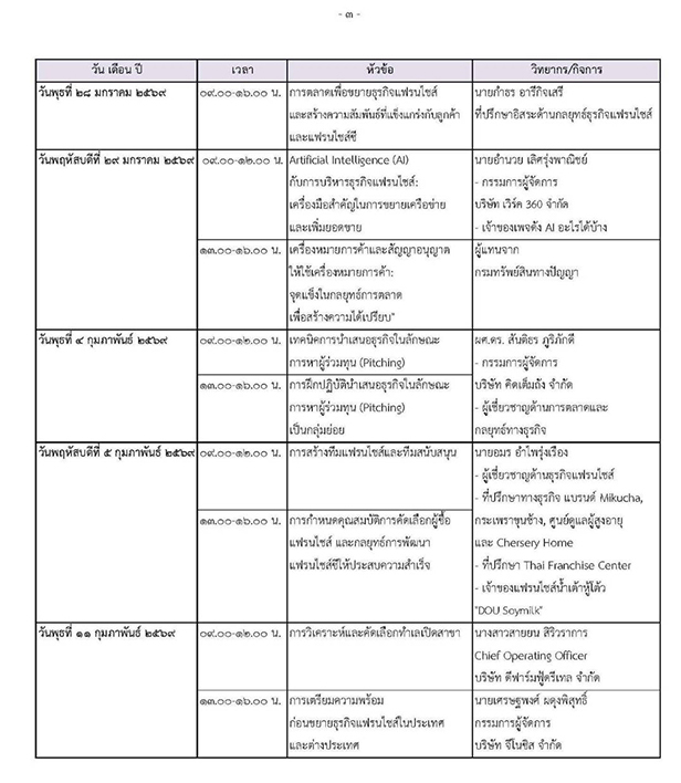 - ไม่เคยผ่านการอบรมหลักสูตรการบริหารจัดการธุรกิจแฟรนไชส์ (B2B Franchise) รุ่นที่ 1-28