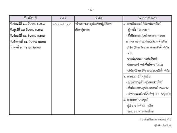 กรมพัฒนาธุรกิจการค้า กระทรวงพาณิชย์ เปิดรับสมัครผู้ประกอบการเข้าร่วมอบรม “หลักสูตรการบริหารจัดการธุรกิจแฟรนไชส์ รุ่นที่ 29 (DBD Franchise Program : DBD-FP) ประจำปี 2569