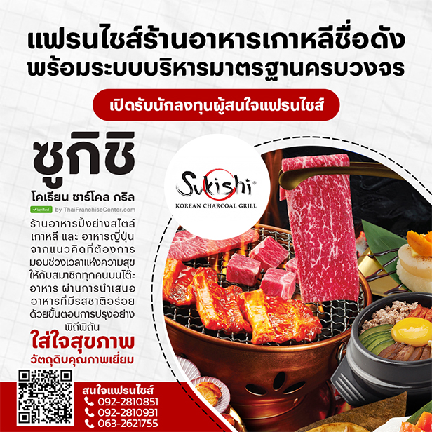 “ซูกิชิ โคเรียน ชาร์โคล กริล” แฟรนไชส์ปิ้งย่างเกาหลีพรีเมียม น่าลงทุนก่อนสิ้นปี 2025
