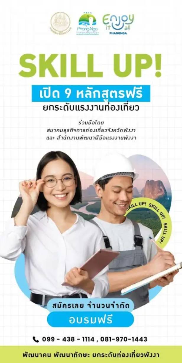 กรมพัฒนาฝีมือแรงงาน โดยสำนักงานพัฒนาฝีมือแรงงานพังงา ร่วมกับจังหวัดพังงา และสมาคมธุรกิจการท่องเที่ยวจังหวัดพังงา จัดโครงการ "พัฒนาศักยภาพแรงงานอย่างยั่งยืนเพื่อรองรับการท่องเที่ยวคุณภาพตามมาตรฐาน" เปิดรับสมัครแรงงานในภาคการท่องเที่ยวเข้าร่วมการฝึกอบรม ฟรี รวม 9 หลักสูตร เพื่อยกระดับทักษะ เพิ่มโอกาส และสร้างอนาคตที่มั่นคงให้กับแรงงานในพื้นที่
