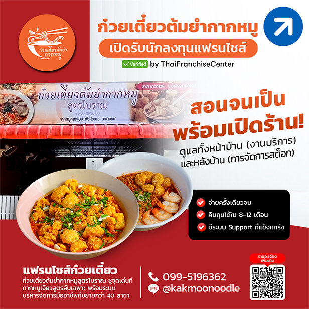 สนใจลงทุนแฟรนไชส์ก๋วยเตี๋ยวต้มยำกากหมู โทร. 099-5196362
