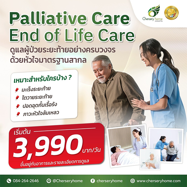 หนึ่งในบริการที่น่าสนใจคือ Palliative care End of Life Care หรือการดูแลผู้ป่วยในระยะประคับประคอง โดย Chersery Home เชื่อว่าผู้ป่วยควรได้รับการดูแลอย่างสงบและครอบครัวควรได้ใช้เวลาสุดท้ายร่วมกันอย่างเข้าใจ มีจุดเด่นสำหรับบริการนี้ที่น่าสนใจคือ