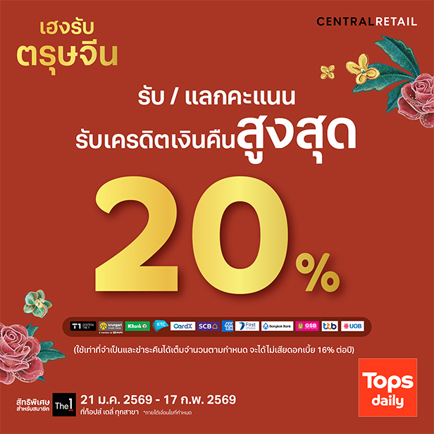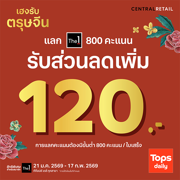 ล่าสุดเปิดตัวแคมเปญต้อนรับวันตรุษจีน จัดโปรโมชันรับอั่งเปาคูปองส่วนลดสูงสุด 15 % เพียงช็อปครบ 150 บาท/ใบเสร็จก็มีสิทธิ์ใช้โปรโมชันได้ทันที ยิ่งช็อปเยอะ ยิ่งลดเยอะ โดย Tops Daily มีสินค้าให้เลือกครบทั้งของไหว้ ของกิน และของใช้ มาที่เดียวมีครบ จบทุกความต้องการ ผู้สนใจสามารถใช้สิทธิโปรโมชันได้ตั้งแต่วันนี้ – 17 กุมภาพันธ์ 2569