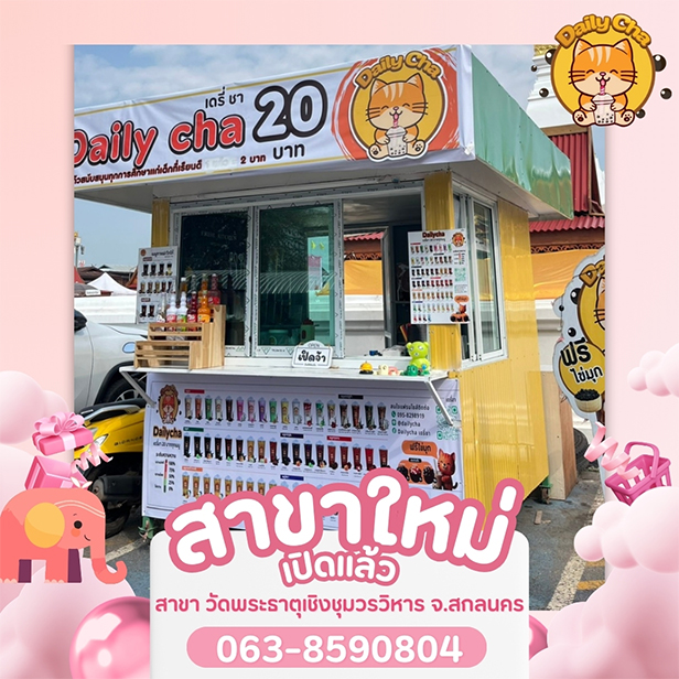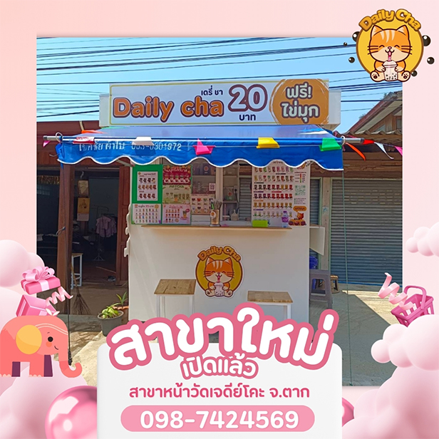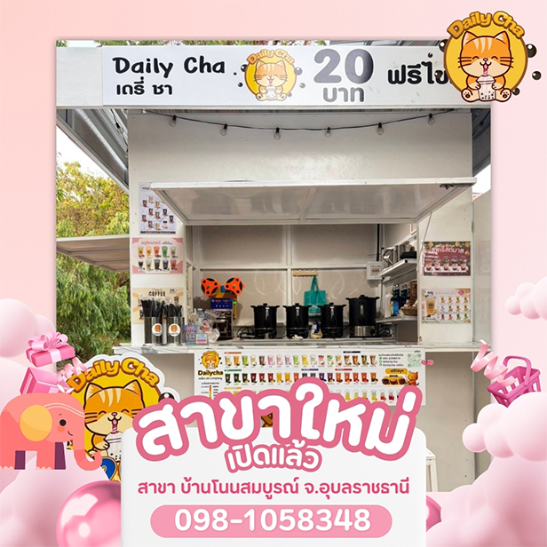 สำหรับการลงทุนที่คุ้มค่าในยุคนี้สินค้าต้องมีคุณภาพ + บริการดี และมีระบบบริหารจัดการที่สนับสนุนคนลงทุนได้เป็นอย่างดี ซึ่งเดรี่ชา ตอบโจทย์ทุกความต้องการเป็นอย่างดี ด้วยจุดเด่นคือชานมไข่มุกแก้วละ 20 บาท ฟรีไข่มุก มีเมนูให้เลือกเยอะ มาพร้อมแพ็กเกจลงทุนให้เลือกได้ตามต้องการ ทุกแพ็กเกจได้รับอุปกรณ์ + วัตถุดิบพร้อมเปิดร้าน เป็นอีกหนึ่งแฟรนไชส์สร้างอาชีพที่เหมาะสมกับการลงทุนในทุกพื้นที่ทั่วประเทศ ล่าสุดอัพเดทสาขาใหม่อีก 10 แห่งได้แก่