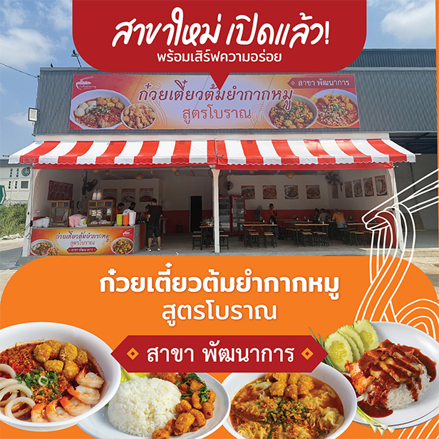 แฟรนไชส์ ก๋วยเตี๋ยวต้มยำกากหมู เปิดสาขาใหม่ “พัฒนาการ” แฟรนไชส์น่าลงทุน! อร่อยทุกเมนู