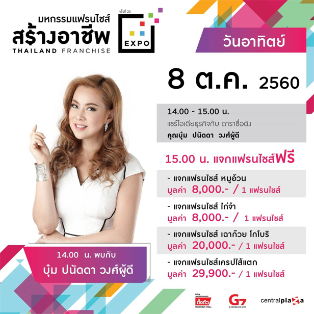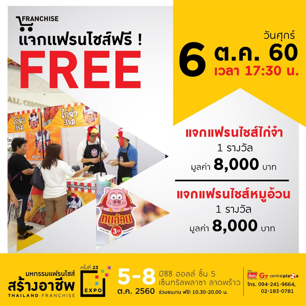 - ฟรี! กิจกรรมแจกแฟรนไชส์ฟรีทุกวัน สำหรับผู้ลงทะเบียนร่วมงาน