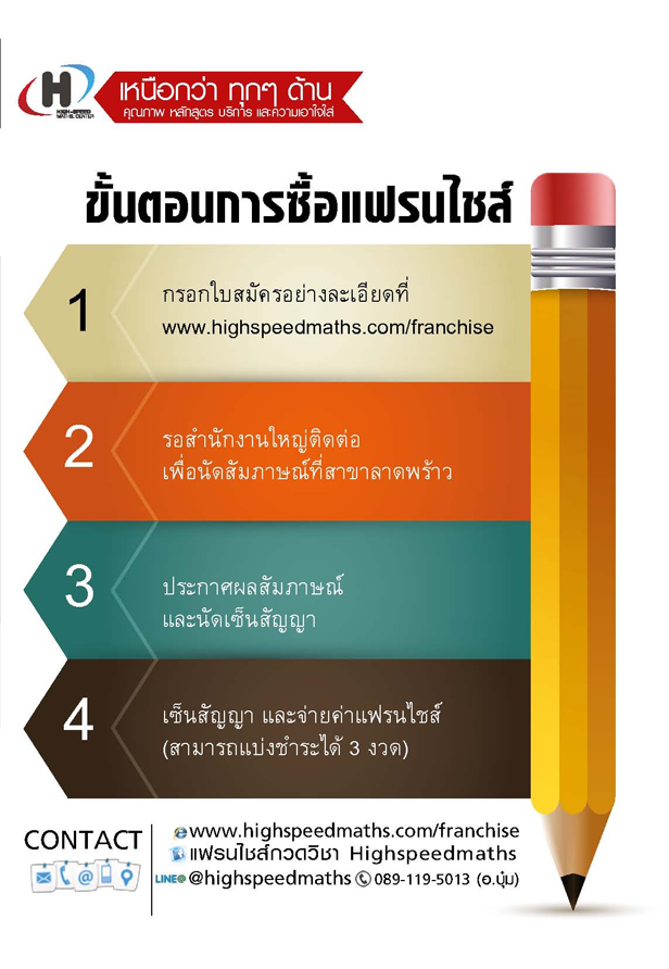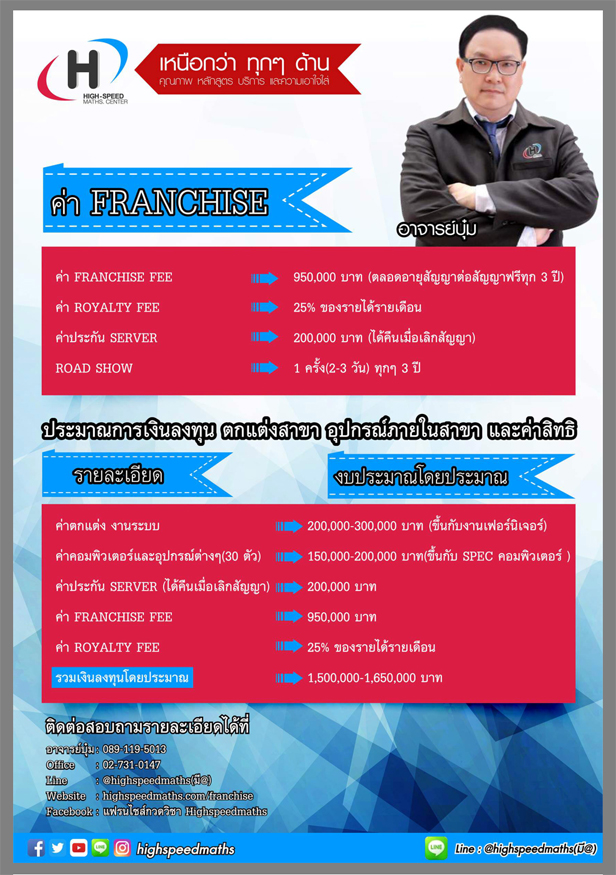 ตอกย้ำอันดับ 1 ประเทศแฟรนไชส์กวดวิชาตัวจริง HIGH-SPEED MATHS. คุ้มค่ากับการลงทุนที่สุด เหนือกว่าทุกด้าน