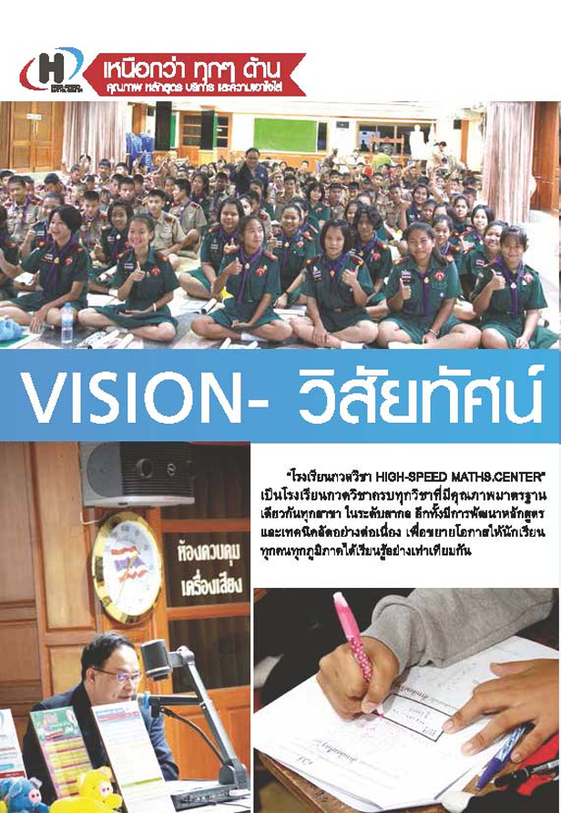“สถาบัน ‘HIGH-SPEED MATHS.CENTER’ สอนโดยทีมอาจารย์มืออาชีพระดับเกียรตินิยมและเหรียญทองโอลิมปิก ผู้เชี่ยวชาญเฉพาะแต่ละวิชาเป็นผู้ถ่ายทอดบทเรียน สอนสนุก น่าติดตาม ทำเรื่องยากให้เป็นเรื่องง่าย สอนละเอียดเป็นระบบขั้นตอนพร้อมโจทย์ทุกบท โดยเปิดสอนตั้งแต่ชั้นประถมศึกษาปีที่6 จนถึงชั้นมัธยมศึกษาปีที่6 ครบทุกวิชา อาทิ คณิตศาสตร์ ฟิสิกส์ วิทย์ เคมี ชีวะ ภาษาอังกฤษ ไทย สังคม และวิชาอื่นๆ มากกว่า 500 หลักสูตรตั้งแต่ระดับพื้นฐานจนถึงระดับโอลิมปิกด้วยสื่อการสอนที่ UPDATE ทันสมัยตลอดเวลา” สำหรับการลงทุนรูปแบบใหม่