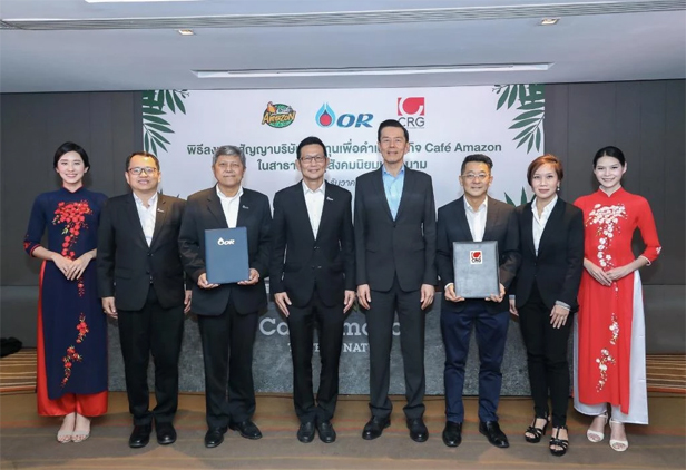 นายอรรถพล ฤกษ์พิบูลย์ ประธานกรรมการ และนายวิศาล ชวลิตานนท์ รองกรรมการผู้จัดการใหญ่การตลาดต่างประเทศ บริษัท ปตท. น้ำมันและการค้าปลีก จำกัด (มหาชน) (โออาร์) พร้อมด้วย นายณัฐ วงศ์พานิช กรรมการผู้จัดการใหญ่ บริษัท เซ็นทรัล เรสตอรองส์ กรุ๊ป จำกัด (ซีอาร์จี) ซึ่งเป็นหนึ่งในบริษัทกลุ่มเซ็นทรัล ร่วมพิธีลงนามสัญญาจัดตั้งบริษัทร่วมทุนเพื่อดำเนินธุรกิจ คาเฟ่ อเมซอน ในประเทศเวียดนาม ณ โรงแรมเซ็นทารา แกรนด์ แอท เซ็นทรัลพลาซ่าลาดพร้าว เพื่อให้สิทธิสัญญามาสเตอร์แฟรนไชส์แก่บริษัทร่วมทุนในการขยายธุรกิจร้าน คาเฟ่ อเมซอนในประเทศเวียดนาม