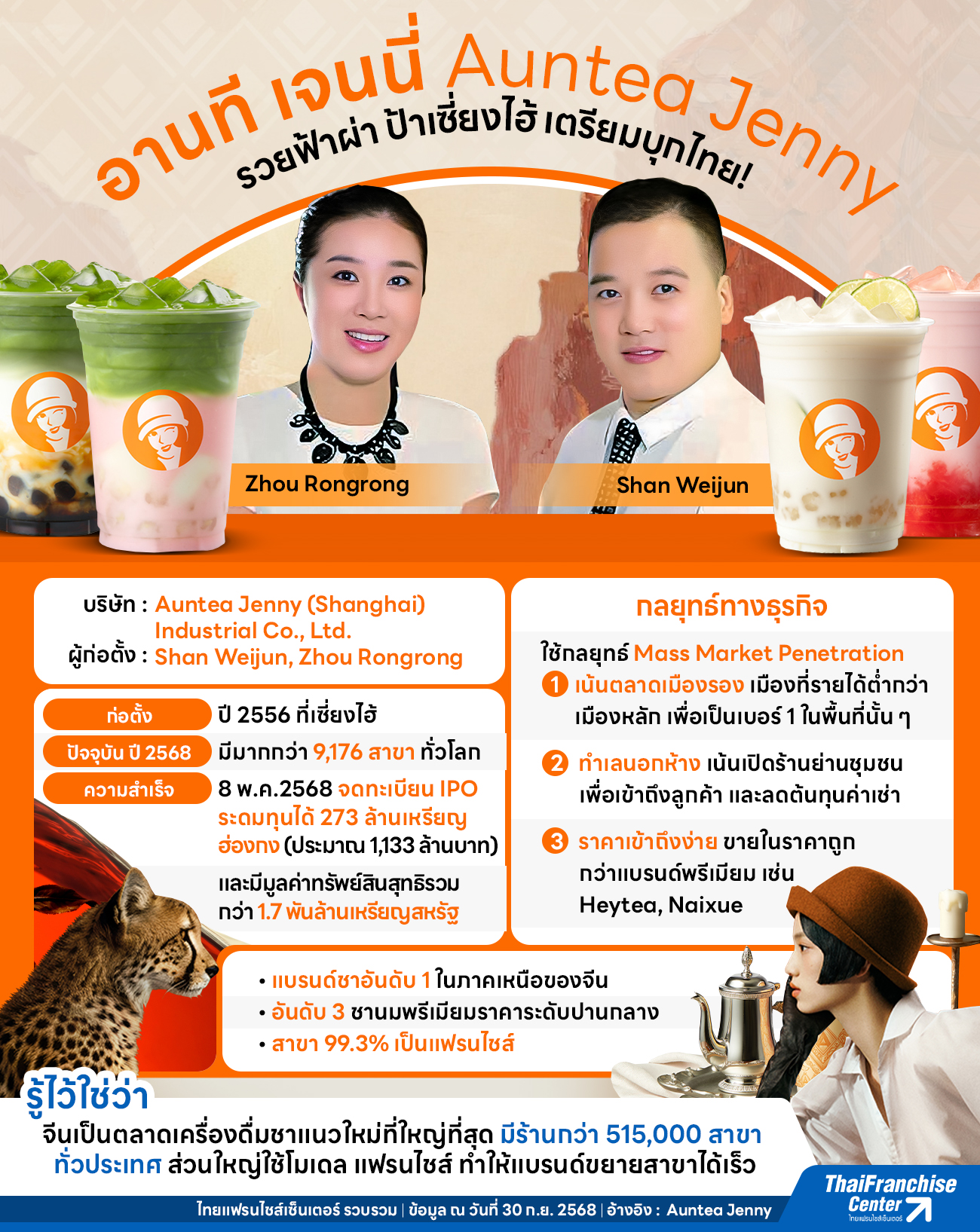 ไทยแฟรนไชส์เซ็นเตอร์ รวมรวบ | ข้อมูล ณ 30 ก.ย. 2568 | อ้างอิง : Auntea Jenny