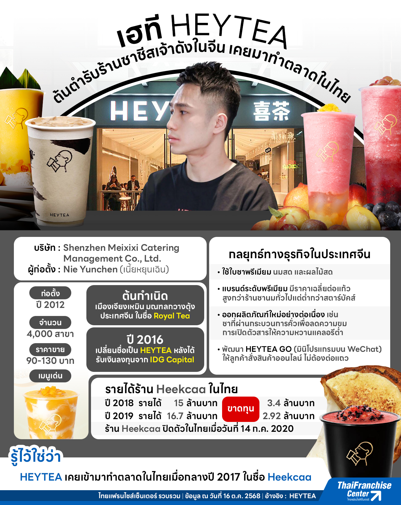 ไทยแฟรนไชส์เซ็นเตอร์ รวบรวม | ข้อมูล ณ วันที่ 16 ต.ค. 2568 | อ้างอิง : HEYTEA
