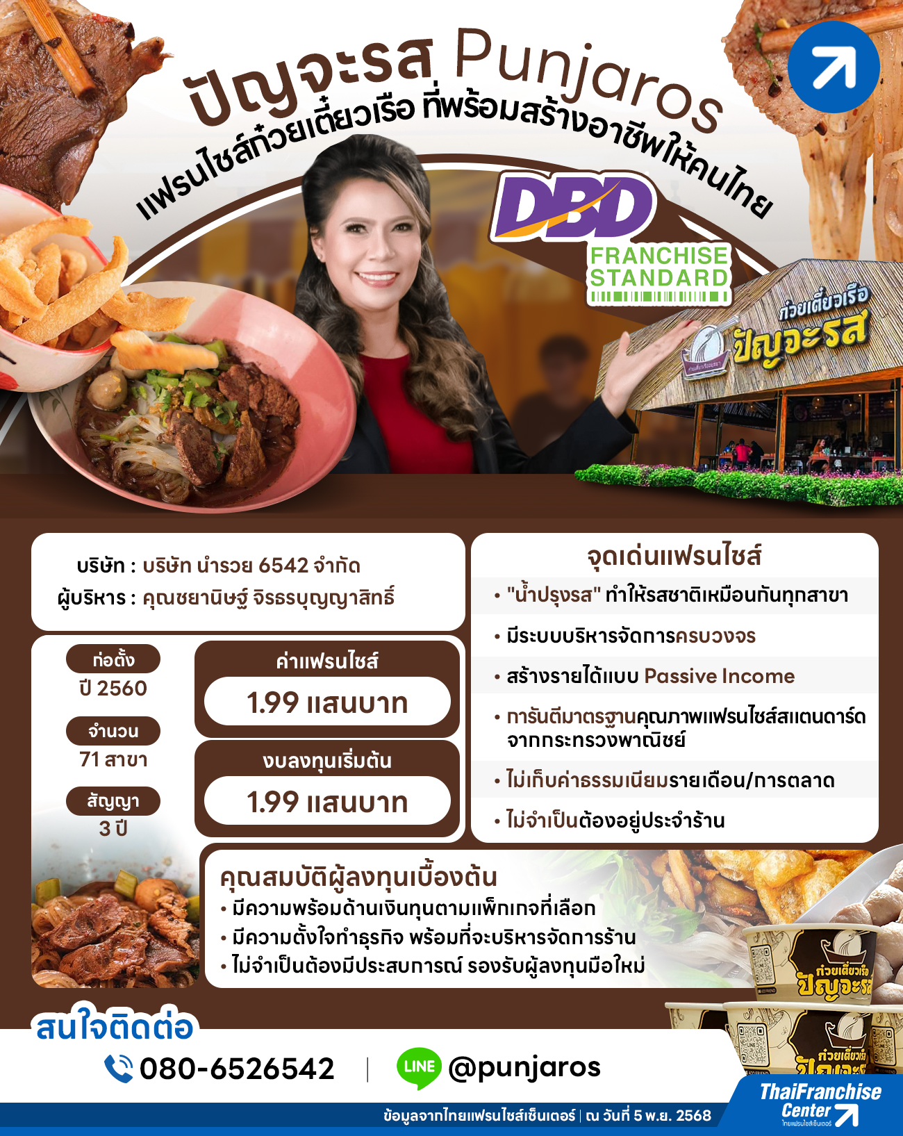 ข้อมูลจากไทยแฟรนไชส์เซ็นเตอร์ | ณ วันที่ 5 พ.ย. 2568