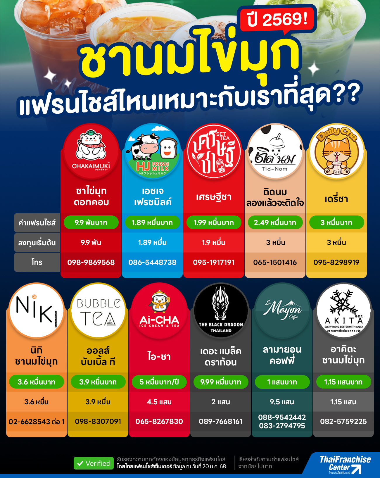 ชานมไข่มุก ปี 2569! แฟรนไชส์ไหนเหมาะกับเราที่สุด?