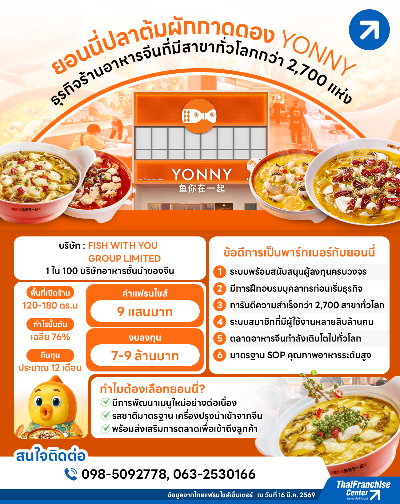 ยอนนี่ปลาต้มผักกาดดอง YONNY ธุรกิจร้านอาหารจีนที่มีสาขาทั่วโลกกว่า 2,700 แห่ง