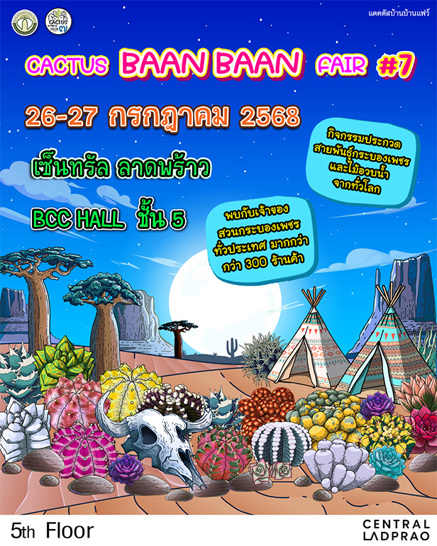 สาวกแคคตัส เตรียมตัวให้พร้อม! เพราะ งาน Cactus Baan Baan Fair 7กลับมาแล้วจ้าา ครั้งนี้บอกเลยว่า จัดเต็มยิ่งกว่าเดิม! พบกับเจ้าของสวนกระบองเพชรทั่วประเทศ มากกว่า 300 ร้านค้า และกิจกรรมประกวดสายพันธุ์กระบองเพชรและไม้อวบน้ำจากทั่วโลก