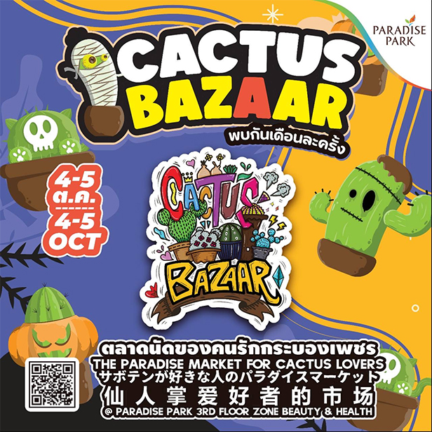 เตรียมตัวให้พร้อม ความน่ารักสุดกรีนกำลังจะกลับมาอีกครั้งกับงาน CACTUS BAZAAR ตลาดนัดของคนรักกระบองเพชร ในงานคุณจะได้เจอกับ กองทัพกระบองเพชรนานาชนิด ทั้งเล็ก ทั้งใหญ่ ทั้งหายาก, ของตกแต่งกระถาง และของแต่งบ้านสุดครีเอทีฟ, มุมช้อปของสะสมเก๋ ๆ สำหรับสายรักธรรมชาติ
