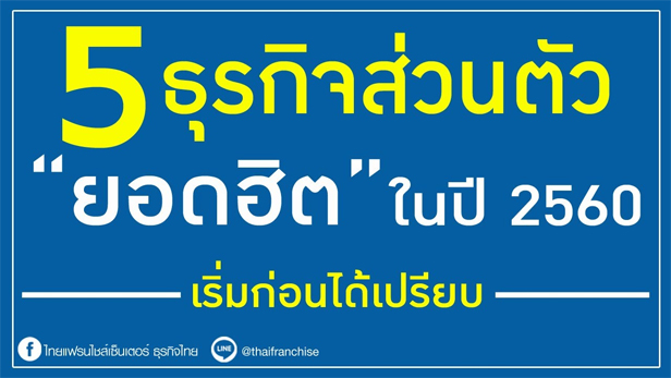 5 ธุรกิจส่วนตัวยอดฮิต ปี 2560 เริ่มก่อนได้..