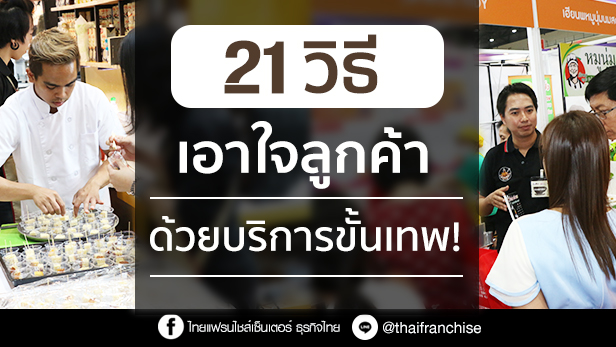 การค้ายุคใหม่จะมุ่งแต่ผลิตสินค้าให้มีคุณภาพอย่างเดียวไม่ได้ งานบริการก็ต้องก้าวล้ำนำหน้าสร้างความประทับใจให้ลูกค้าได้อย่างสุดโต่งเช่นกัน และในวันนี้ www.ThaiFranchiseCenter.com มี21วิธีเอาใจลูกค้าด้วยบริการขั้นเทพที่เป็นการสร้างนวัตกรรมมาตอบโจทย์คนซื้อสินค้าได้อย่างดี สำหรับนักธุรกิจหรือพ่..