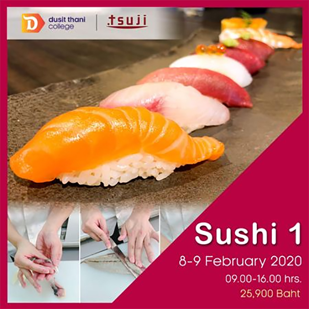 วิทยาลัยดุสิตธานี ภูมิใจเสนอ "Sushi 1 & 2" หากคุณเป็นคนหนึ่งที่ต้องการเป็นเชฟหรือมีความสามารถทางด้านการทำซูชิสไตล์ญี่ปุ่นต้นตำรับแท้ คุณไม่ควรพลาดหลักสูตรซูชิยอดนิยมสอนละเอียดตั้งแต่พื้นฐาน เรียนจบครบได้ภายใน 4 วัน ที่นี่ที่เดียวในประเทศไทย !! เพียงปีละ 1 ครั้ง !!
