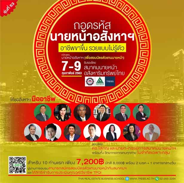 | หลักสูตร นายหน้าอสังหาฯ (เพื่อสอบบัตรตัวแทนนายหน้า) : RE131 รุ่นที่ 53