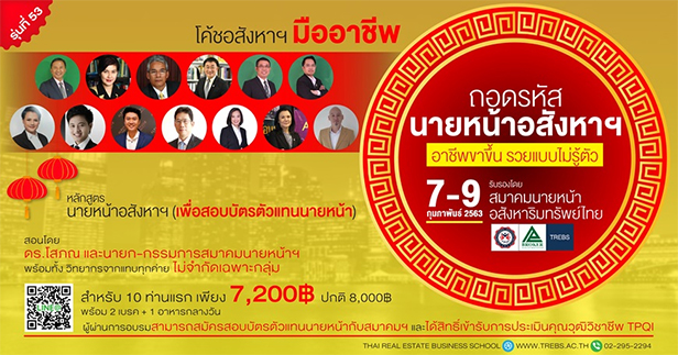 | หลักสูตร RE131 นายหน้าอสังหาฯ รุ่นที่ 53 (เพื่อสอบบัตรตัวแทนนายหน้า)