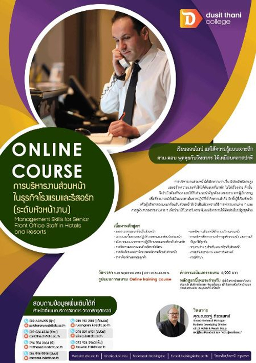 | สัมมนา การบริหารงานส่วนหน้าในธุรกิจโรงแรมและรีสอร์ท (ระดับหัวหน้างาน) - ONLINE COURSE
