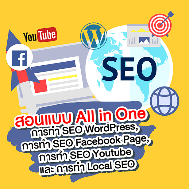 - หลักสูตร SEO ที่ไหน ที่จะสอนแบบ All in One ทั้งการทำ Website SEO, SEO WordPress, การทำ SEO Facebook Page, การทำ SEO YouTube, การทำ Local SEO (3 Packs) และการทำ Image SEO?