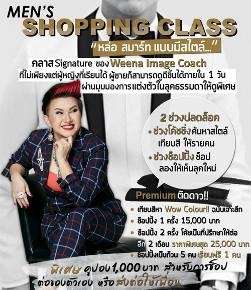 MEN's Shopping Class "หล่อ สมาร์ท แบบมีสไตล์" คลาส Signature ของ Weena Image Coach ที่ไม่เพียงแต่ผู้หญิงที่เรียนได้ ผู้ชายก็สามารถดูดีขึ้นได้ภายใน 1 วัน ผ่านมุมมองการแแต่งตัวในลุคธรรมดาให้ดูพิเศษ