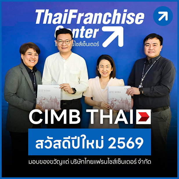วันที่ 9 มกราคม 2569 คุณศรุดา เฉลิมจันทร์ พร้อมด้วย คุณวีระกิตติ์ กีรติชัยธรรม จากธนาคาร CIMB THAI ได้มอบของขวัญปีใหม่แด่บริษัท ไทยแฟรนไชส์เซ็นเตอร์ จำกัด โดยคุณชัยยุทธ วชิรโรจน์ไพศาล CEO ของบริษัทไทยแฟรนไชส์เซ็นเตอร์ เป็นผู้รับมอบ ถือเป็นนิมิตหมายอันดีในการเริ่มต้นปี 2569