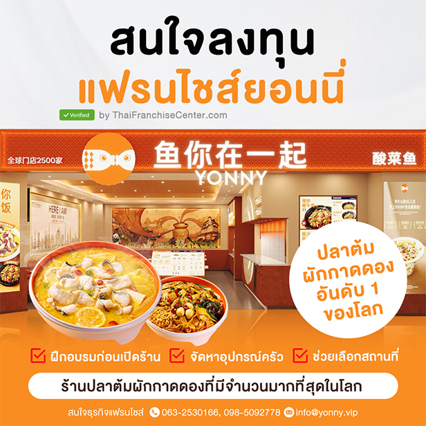 ThaiFranchiseCenter สื่อแฟรนไชส์อันดับ 1 ของไทย โปรโมทแบรนด์แฟรนไชส์ Yonny จากประเทศจีน 3 สาขา สร้างยอดขาย 30 ล้านบาท ภายใน 2 เดือน