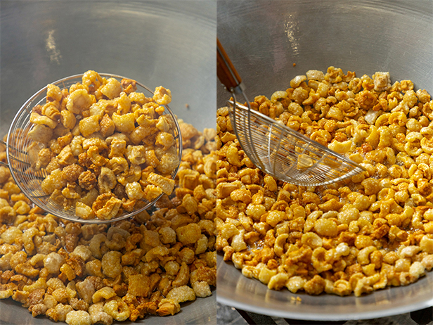 - คัดสรรส่วนหนังที่ดีที่สุดของหมูสำหรับทำกากหมู